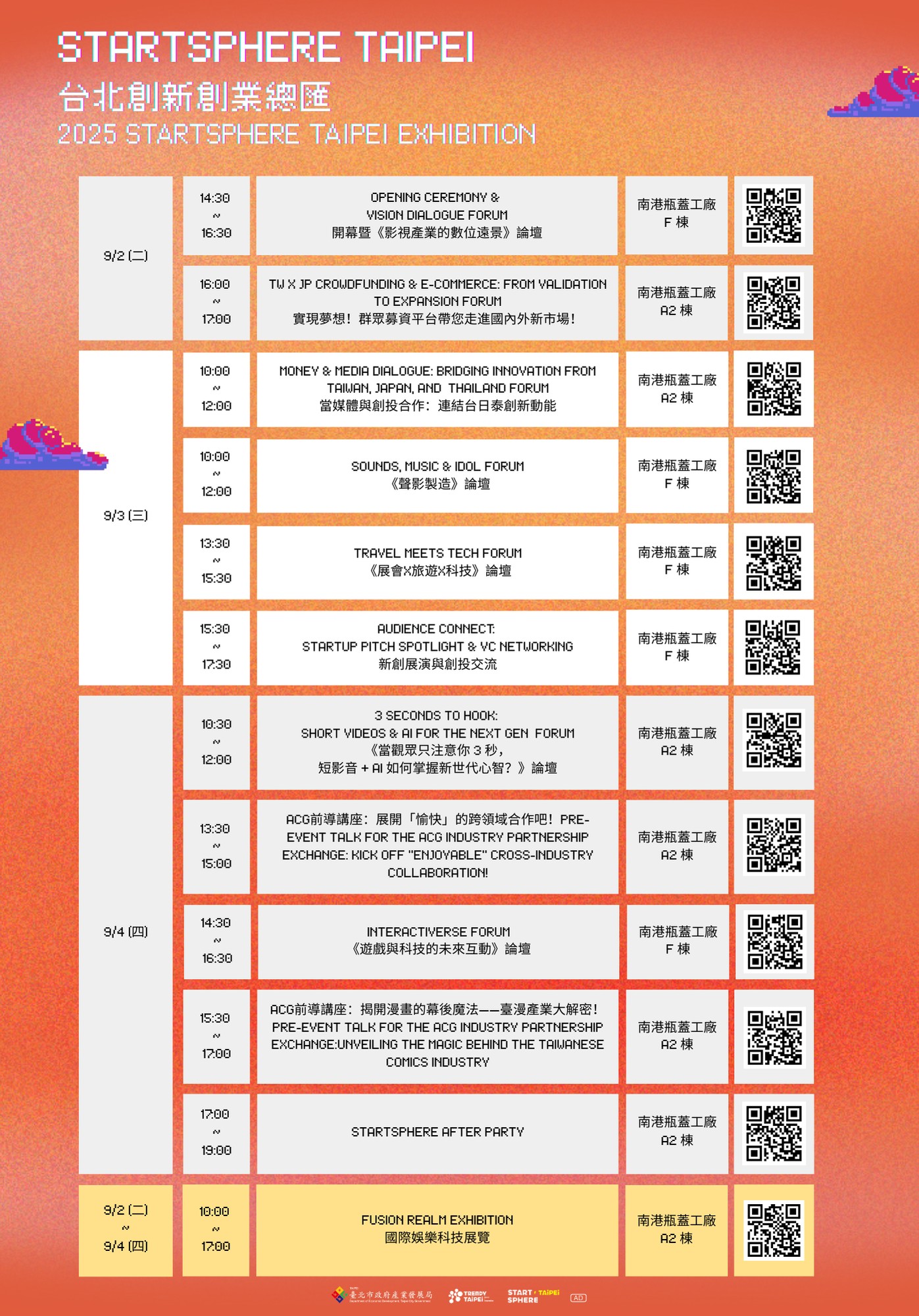今年 StartSphere Taipei 活動期間,同步推出全新「Fusion Realm」展示專區, 精選超過 20 家娛樂科技新創與品牌參與,涵蓋 AI 音樂、虛實整合互動體驗與智慧娛樂應用, 每日更有安排導覽活動,歡迎參加!